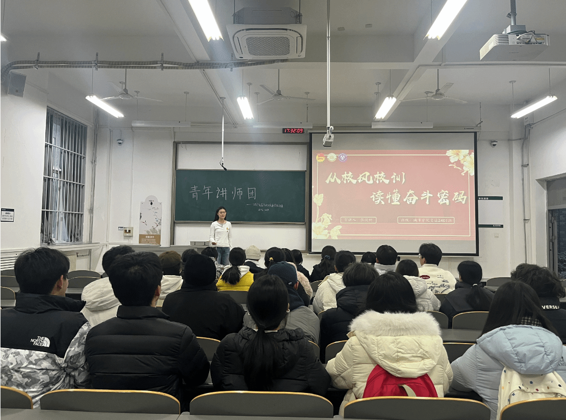 张欣妍同学以《从校风校训读懂奋斗密码》为主题,带领团员青年回望学校扎根西北、艰苦办学的初心岁月,感悟校风校训里蕴含的坚守与担当;引导大家深刻认识到,校风校训不仅是学校办学精神的凝练传承,更是激励一代代学子服务国家建设、勇担时代使命的精神密码;最后号召全体团员青年锚定理想航向,践行校风校训精神,在学业钻研与专业实践中锻造担当实干的品格,以奋斗姿态书写青春答卷。