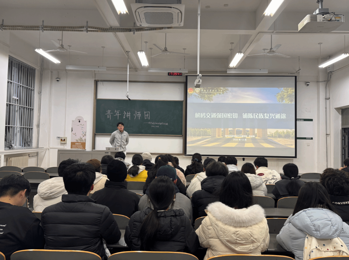 华林炜老师以《解码交通强国密钥 铺陈民族复兴通途》为主题,带领团员青年追溯我国交通事业从筚路蓝缕到四通八达的发展历程,感悟一代代交通人逢山开路、遇水架桥的奋斗精神;引导大家深刻认识到,交通强国是民族复兴的重要支撑,而蕴藏其中的 “密钥”,正是坚守初心的担当、攻坚克难的勇毅与科技赋能的创新;最后号召全体交通运输专业的团员青年,立足专业所长、深耕学术实践,以青春之力破解行业难题,以实干之姿投身路网建设,为铺就民族复兴的康庄通途贡献青春智慧。
